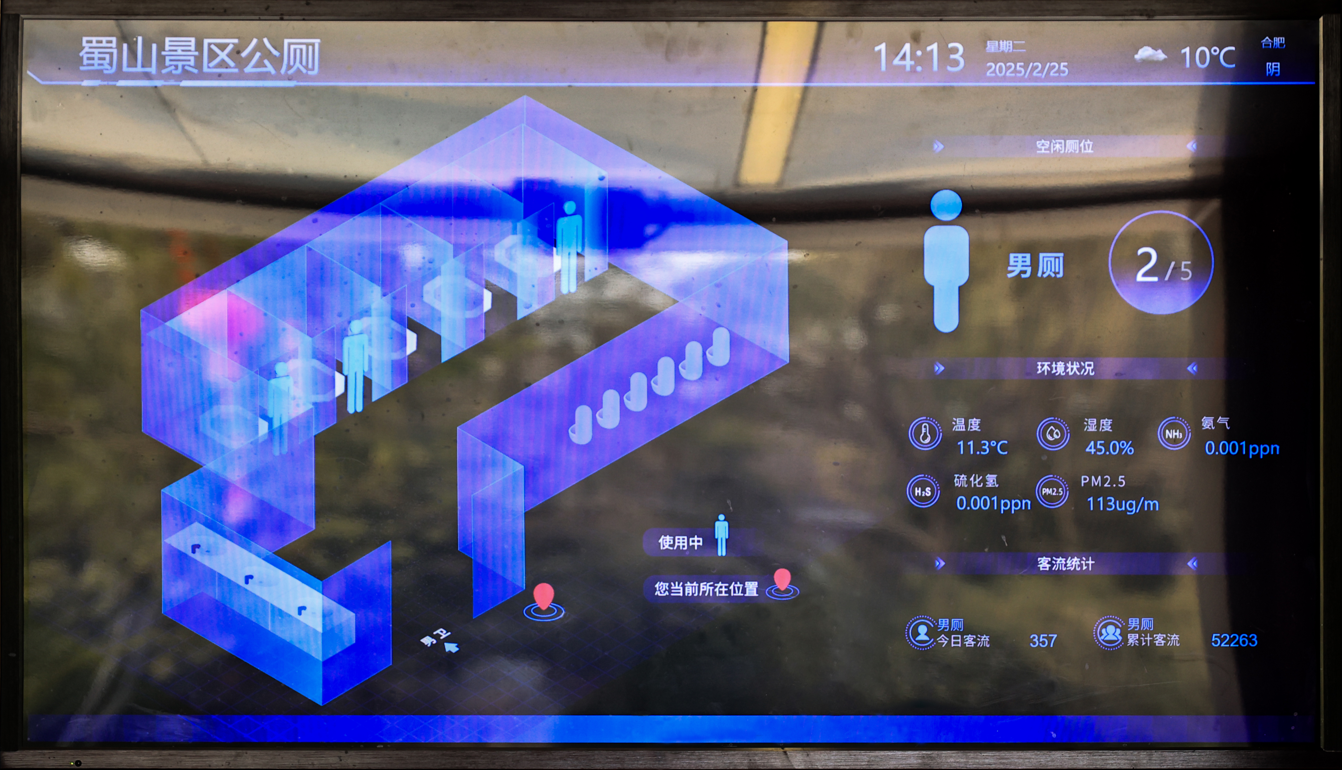 小公廁,大民生。華藝智慧營(yíng)造的大蜀山森林公園北入口智慧公廁,秉持全齡化服務(wù)和無(wú)障礙設(shè)計(jì)理念,將徽風(fēng)皖韻與智慧科技完美相融,匠心打造城市公共空間美學(xué)新范本。粉壁、黛瓦、青松、翠竹、花窗、長(zhǎng)廊……于自然山景中呈現(xiàn)水墨丹青的詩(shī)意空間。室內(nèi)采用全域智慧服務(wù)系統(tǒng),動(dòng)態(tài)監(jiān)測(cè)廁位使用、環(huán)境溫濕度及客流動(dòng)線等,同時(shí)增加第三衛(wèi)生間、母嬰室、休息區(qū)等設(shè)施,全方位覆蓋不同人群需求。公廁以“無(wú)感服務(wù)”踐行人文關(guān)懷,塑造公園配套設(shè)施的智慧新場(chǎng)景,展現(xiàn)公園新活力、新魅力。
